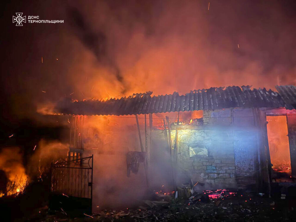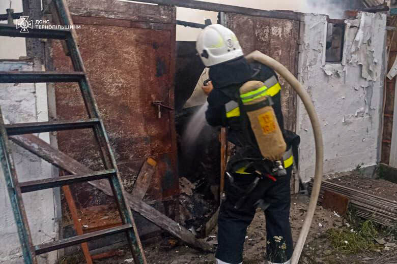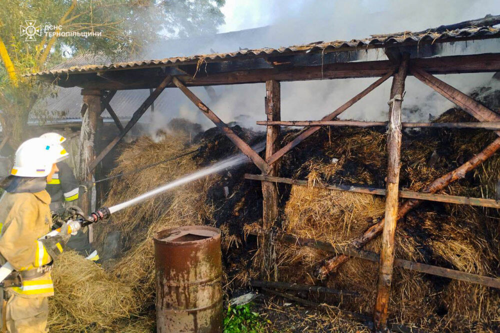 - 15 липня о 01:05 на х. Чверті Нараївської ТГ Тернопільського району виникла пожежа господарської будівлі. Вогнем знищено покриття на площі 80 м.кв., пошкоджено перекриття та стіни господарської будівлі, речі домашнього вжитку на площі 20 м.кв. Пожежу ліквідовано черговим караулом 7 ДПРЧ 2 ДПРЗ Головного управління. Під час гасіння пожежі врятовано 2 будівлі;