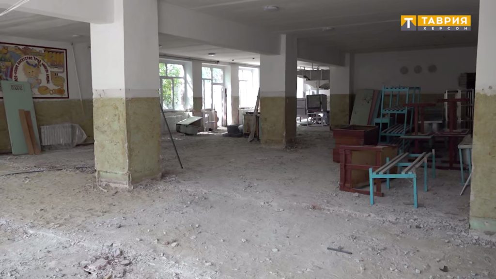 Міська окупаційна адміністрація найняла підрядників, які зняли покрівлю, але потім замість того, щоб її перекрити, взялися за ремонт внутрішнього оздоблення будівлі.  Школа стояла розкритою деякий час, а 11 серпня 2023 року в Генічеську пройшли сильні зливи, і увесь внутрішній  ремонт, який робила російська організація, зійшов нанівець. Більше того, обвалилась стеля, і вода пройшла до першого поверху.