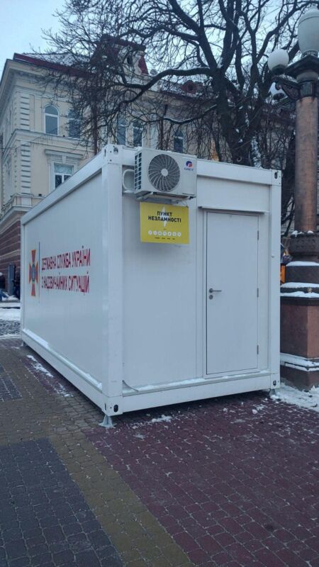 На звернення Тернопільської міської ради Головне управління ДСНС України у Тернопільській області на Театральному майдані встановлено модульний “Пункт незламності” для потреб тернополян. Зараз відбуваються роботи з облаштування та підготовки до роботи. З наступного тижня тернополяни та гості обласного центру зможуть обігрітись, отримати доступ до інтернету, зарядити гаджети та посмакувати чай/кавою. А також зробити свій внесок для потреб Збройних сил України.
