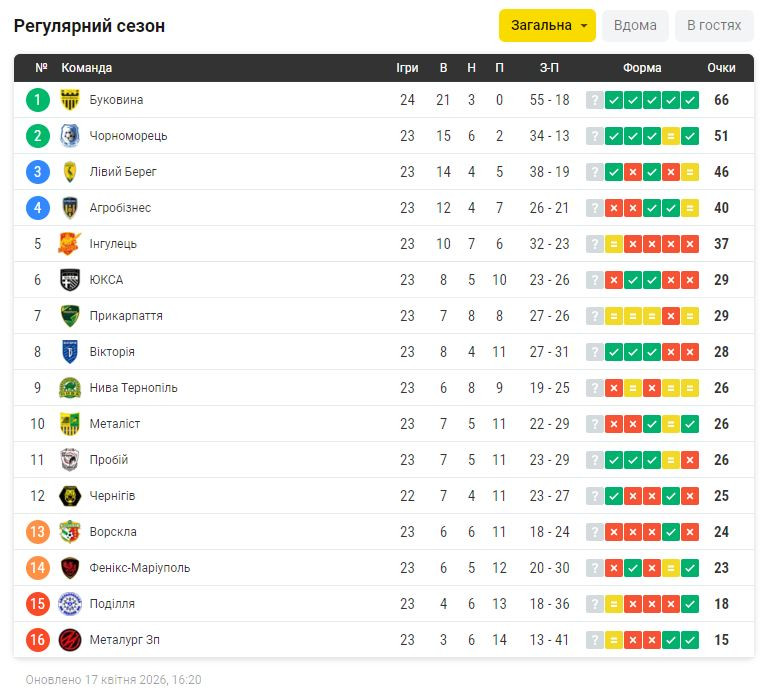«Буковина» продовжила свою переможну серію. Якщо 18 квітня «Лівий Берег» не обіграє тернопільську «Ниву», то «Буковина» забезпечить собі вихід до УПЛ за шість турів до фінішу.
