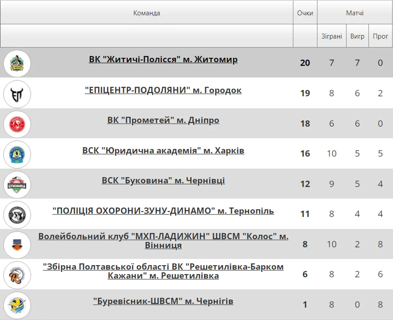 Кинемо швидкий погляд і на жіночу Суперлігу. Там турнірне положення команд наступне: