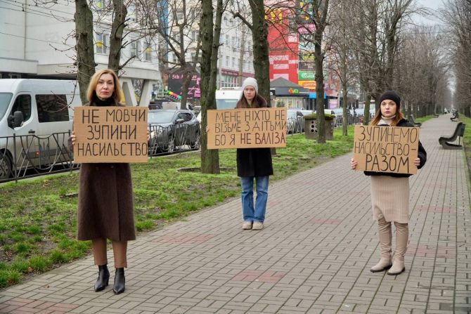 Працівники міської ради, депутати та жителі Черкас вийшли на акцію з промовистими табличками, наголошуючи на потребі говорити про насильство відкрито та відповідально. Учасники підкреслили: важливо не лише звертатися по допомогу, а й бути уважними до людей поруч, які можуть потребувати захисту чи втручання.