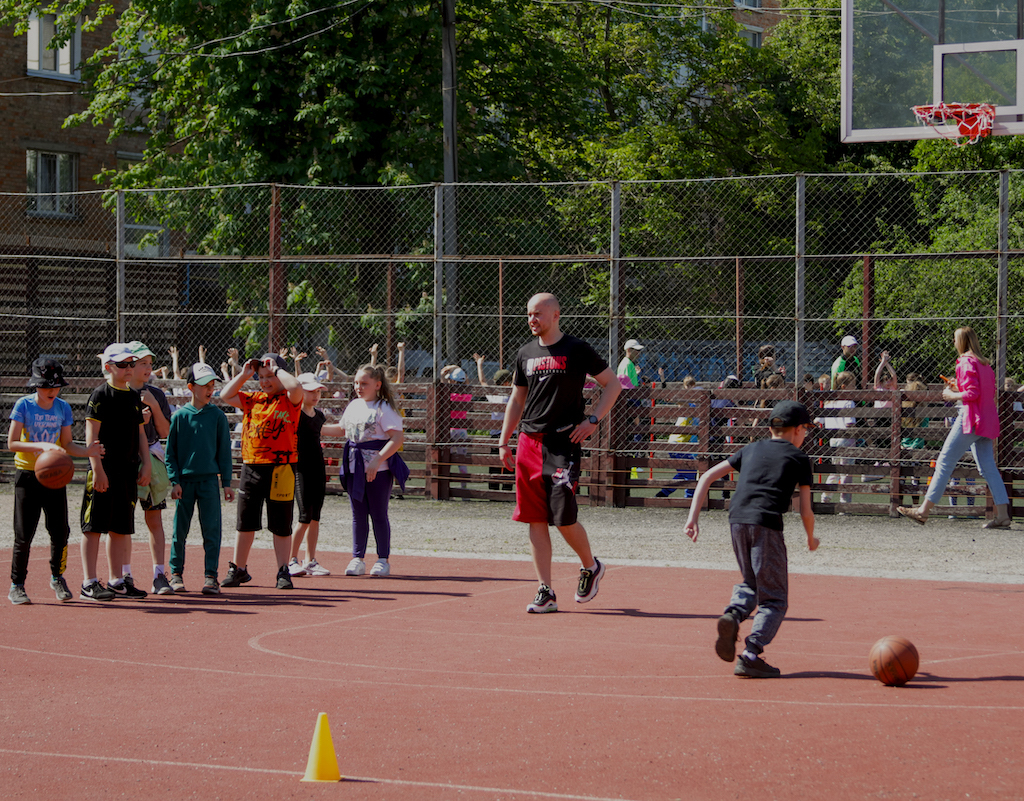 Руслов та Воєвода провели імпровізовані майстер-класи загалом для учнів 25 класів молодшої та старшої школи. Діти мали нагоду позмагатись в естафетах, повправлятись в киданні та веденні м’яча.