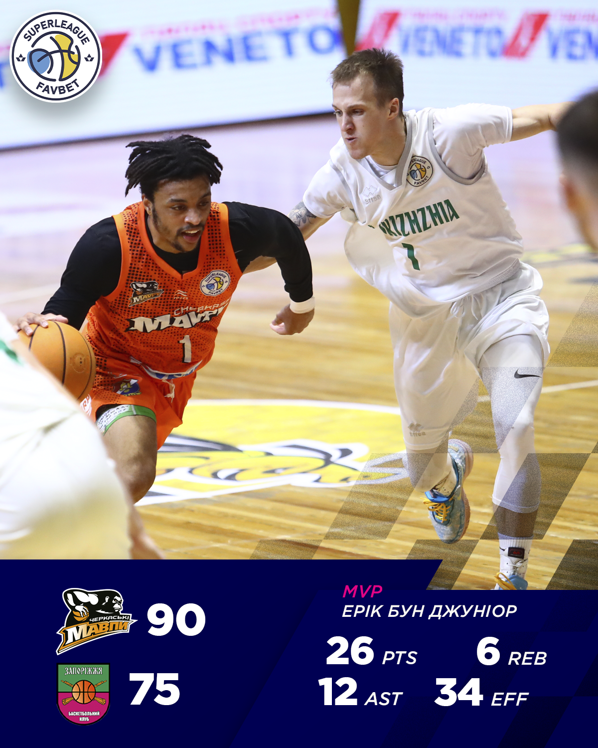 Другий ігровий день останнього баблу регулярного чемпіонату Суперліги Favbet розпочався з перемоги Черкаських Мавп над Запоріжжям з рахунком 90:75.