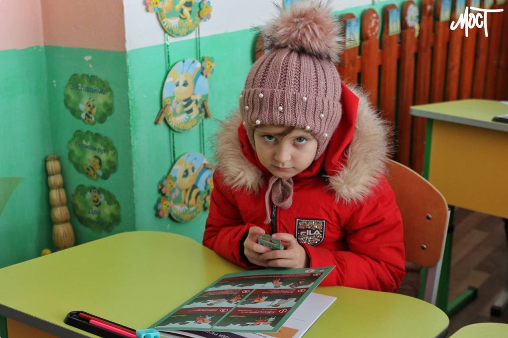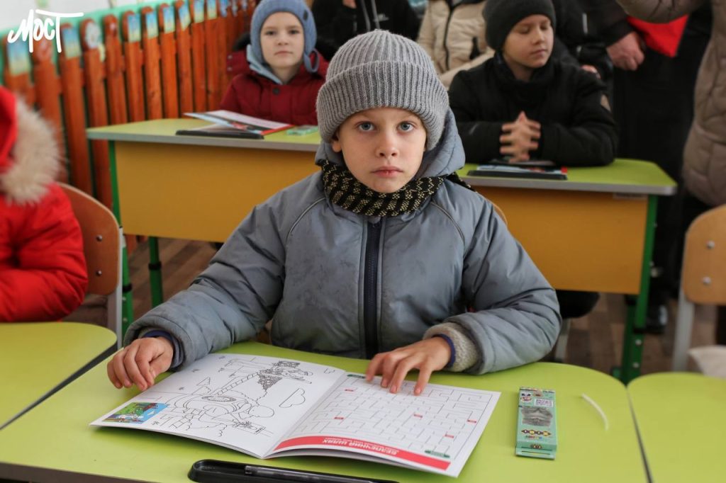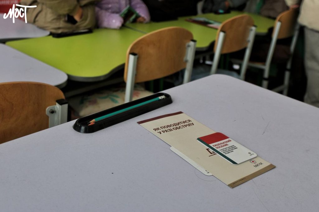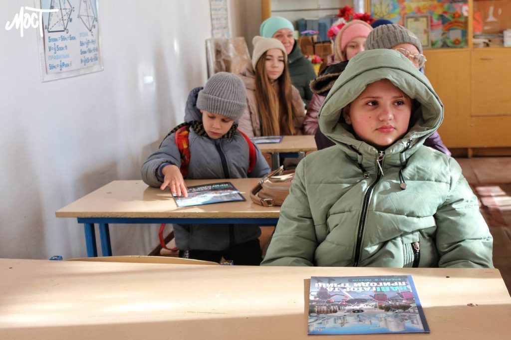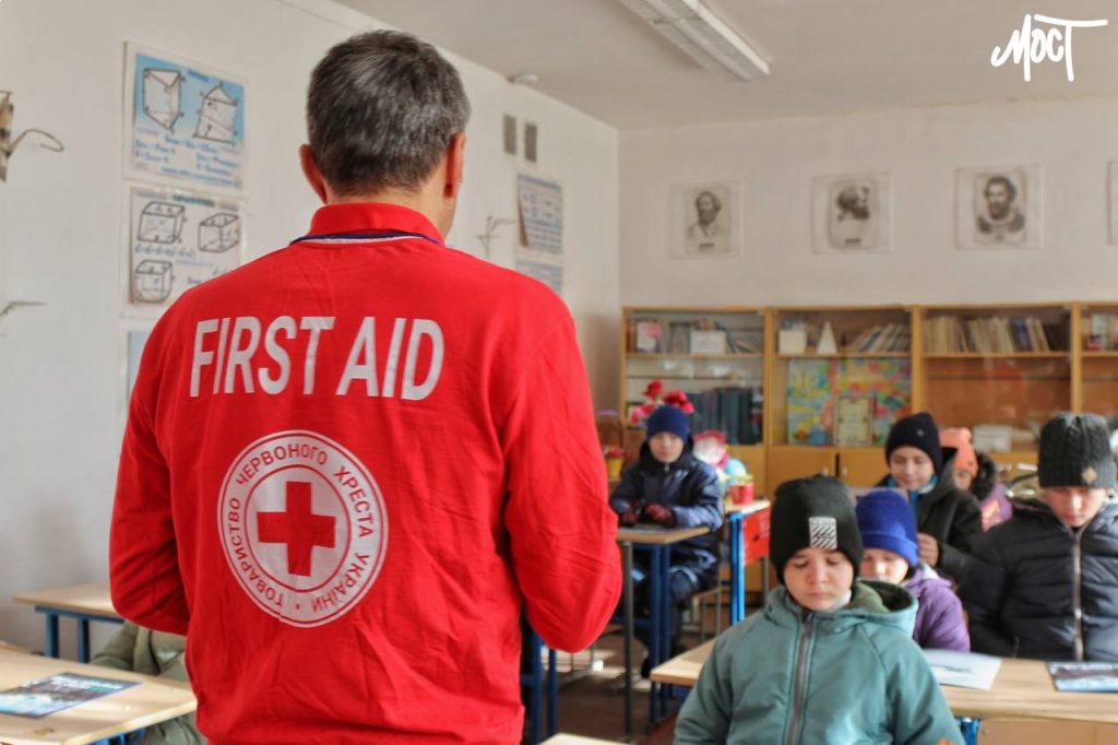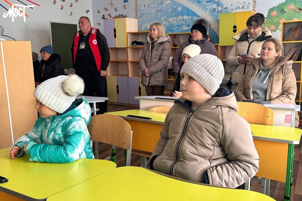 Волонтери Червоного Хреста запросили кореспондентів МОСТа на заняття, яке вони проводили для учнів початкової школи села Борозенське – адміністративного центру Борозенської сільської громади Херсонського району Херсонської області