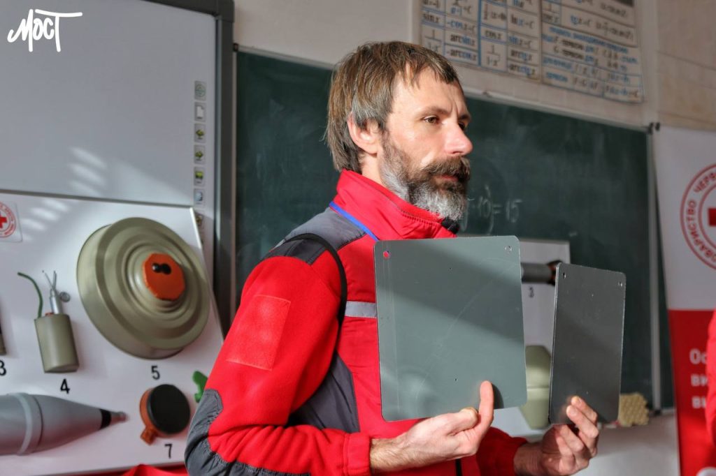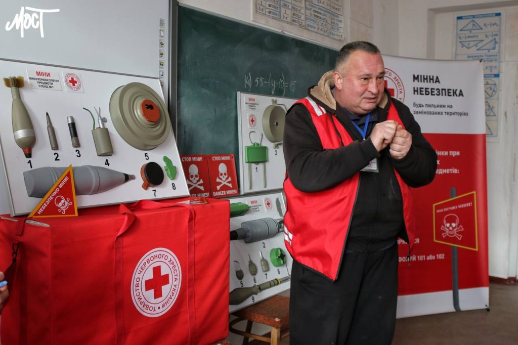 «Міна, незалежно від розміру, завжди несе небезпеку та може вибухнути в будь-який момент. Саме тому фахівці з мінної небезпеки Українського Червоного Хреста активно працюють над підвищенням обізнаності населення, зокрема дітей», – каже Антон Колосов, фахівець з мінної небезпеки Українського Червоного Хреста.