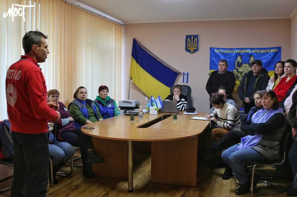 Фахівці з мінної небезпеки Українського Червоного Хреста зустрічаються і з дорослими мешканцями населених пунктів Херсонщини. Такі зустрічі теж можна певною мірою вважати заняттями, хоча й проходять вони у форматі спілкування. Волонтери Червоного хреста діляться знаннями, дають поради. Херсонці розповідають про випадки з свого життя.
