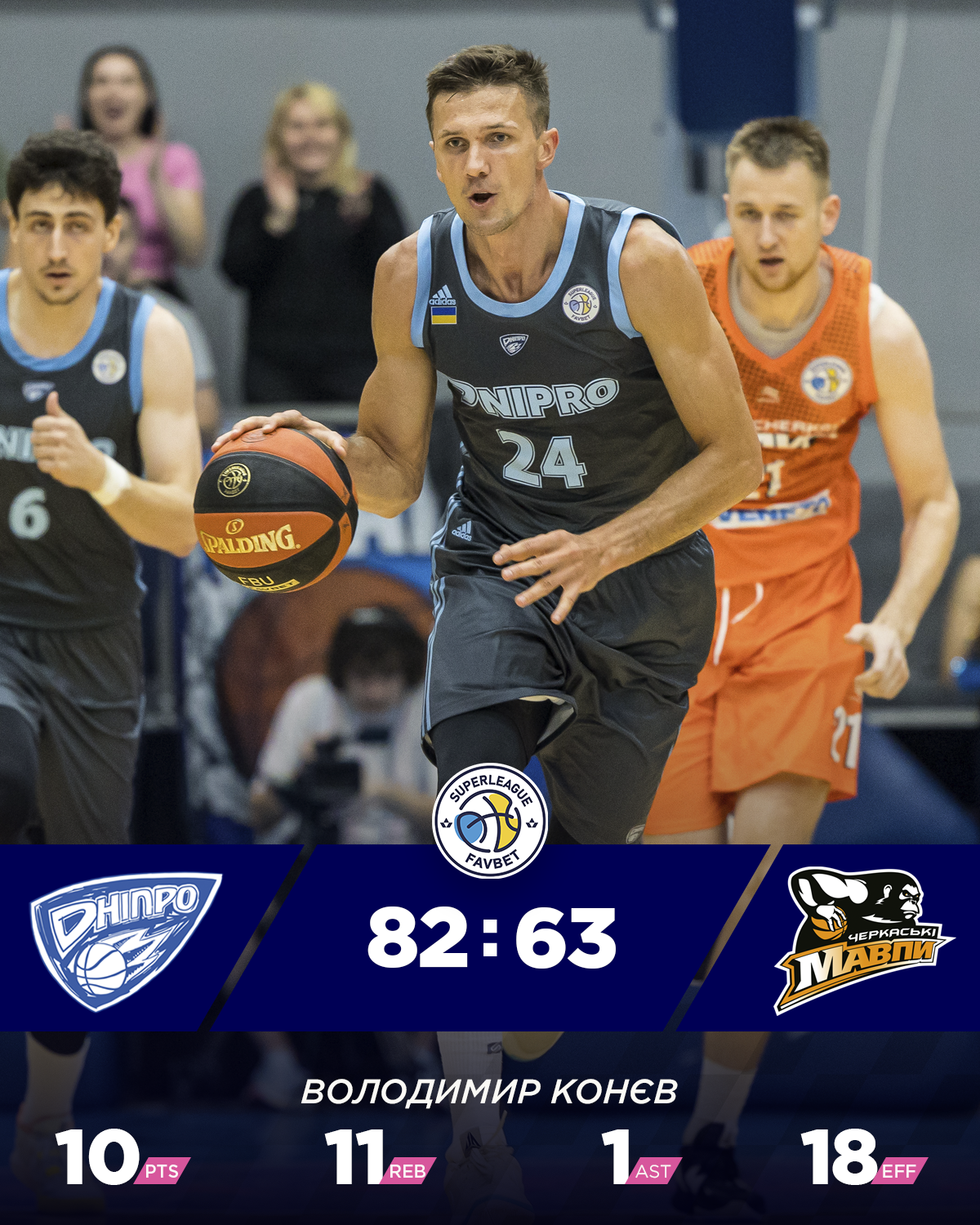 Дніпро здобув перемогу над Черкаськими Мавпами з рахунком 82:63, вигравши другий матч над старті сезону.