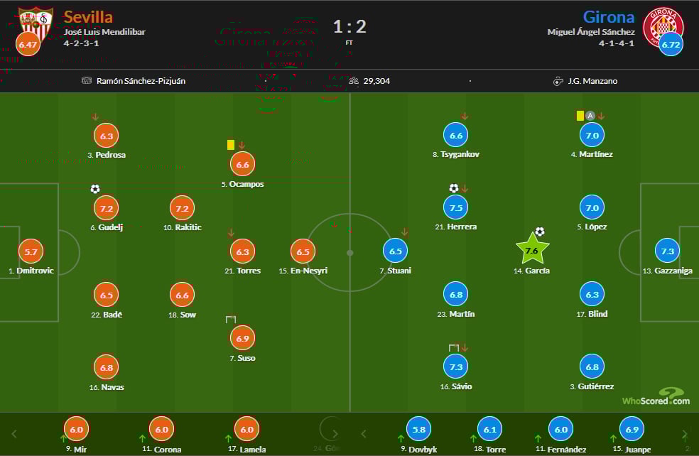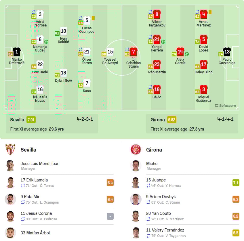 У третьому турі іспанської Примери Жирона несподівано переграла Севілью (2:1). Вінгер Віктор Циганков провів на полі 78 хвилин, форвард Артем Довбик вийшов на заміну на 63-й хвилині.