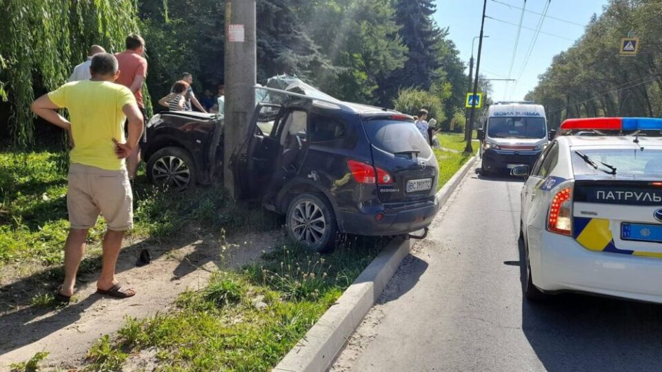 “Аварія на проспекті Злуки. Nissan врізався у стовп.