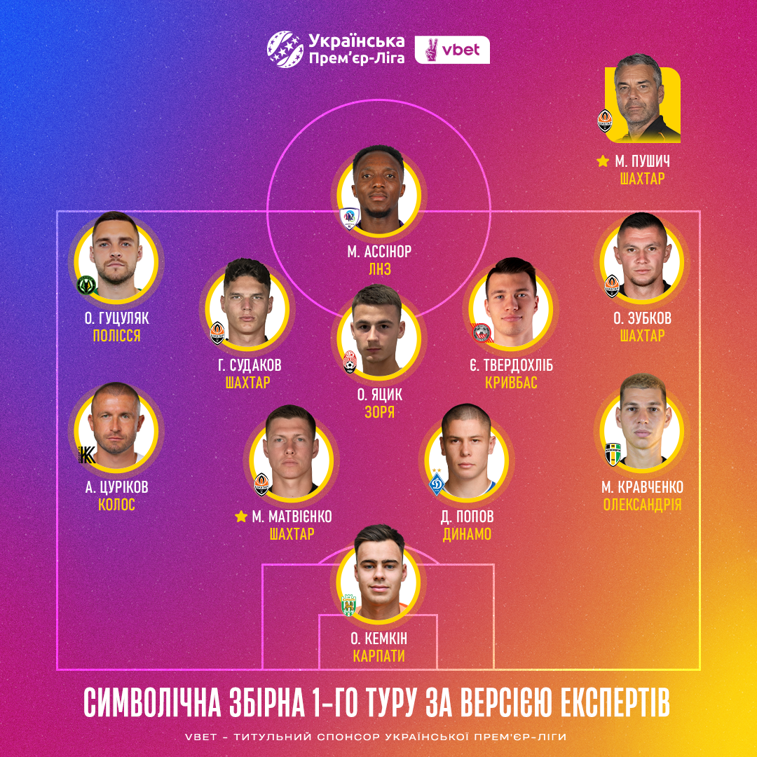Українська Прем’єр-Ліга продовжує відзначати героїв сезону-2024/25 і після догравання перенесених матчів 1-го туру Чемпіонату УПЛ склала символічну збірну, а також назвала найкращого гравця та найкращого тренера 1-го туру. Традиційно це було зроблено разом з ведучими, експертами, коментаторами УПЛ ТБ та представниками провідних спортивних ЗМІ України.