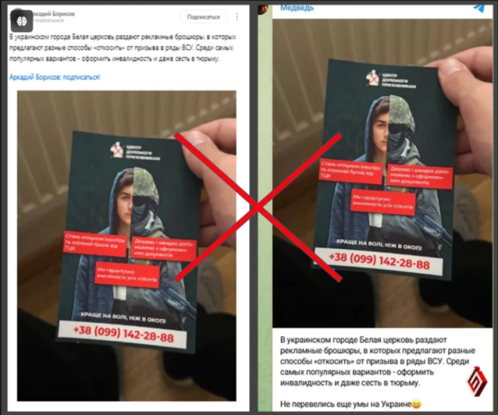Російська пропаганда намагається різними способами дискредитувати та зірвати мобілізаційний процес в Україні. Так, днями агітпроп поширив у соцмережах інформацію про те, що у місті Біла Церква начебто роздають рекламні флаєри такого собі «Центру допомоги призовникам», де пропонують різними способами отримати «бронь» від мобілізації.