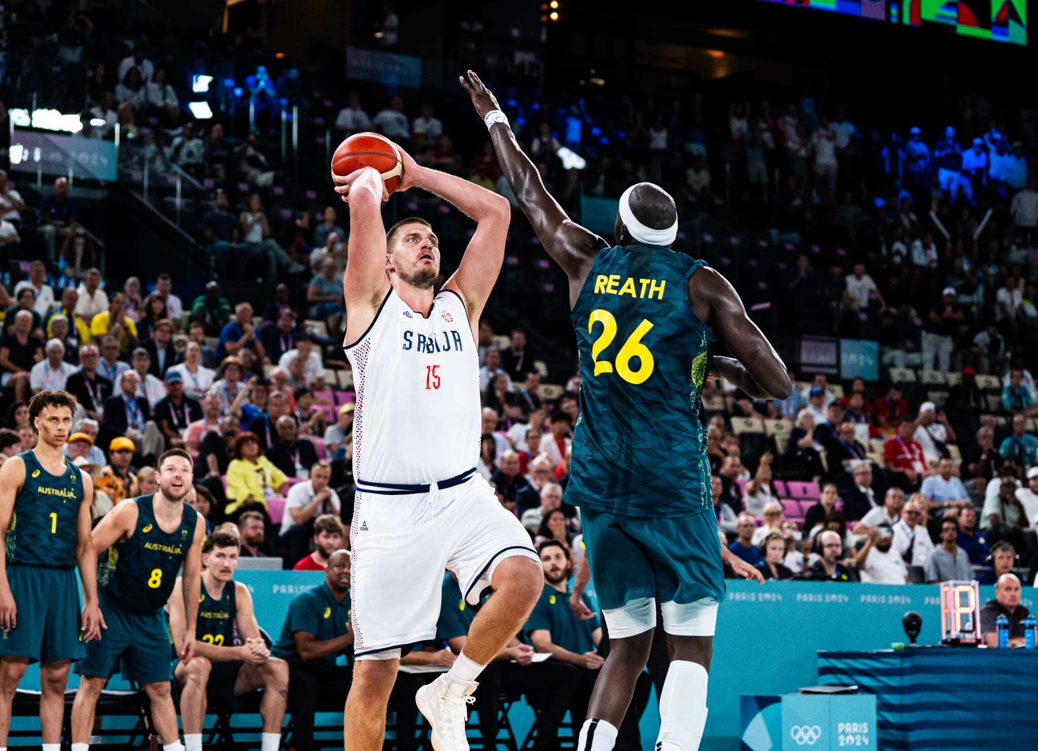 Збірна Сербії, програючи по ходу гри 24 очки, врятувала чвертьфінальний матч проти команди Австралії. Серби в овертаймі дотисли суперника та здобули перемогу з рахунком 95:90. Найкращим у складі сербської збірної став Нікола Йокич, який набрав 21 очко, зробив 14 підбирань, 8 передач та 4 перехоплення (РЕ 35). В 1/2 фіналу Олімпійських ігор збірна Сербії зіграє проти переможця пари США — Бразилія.