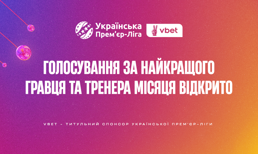 Українська Прем’єр-Ліга традиційно разом із титульним спонсором, компанією VBET Україна, проводить голосування для визначення найкращих тренера та гравця місяця в Чемпіонаті УПЛ.