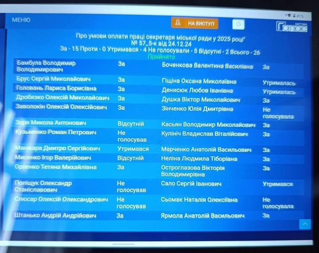 Результати голосування депутатів Золотоніської міської ради за преміювання. Фото: фейсбук Юрія Дудки