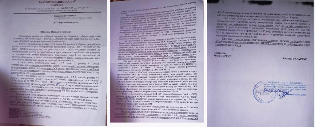 «АТ «Херсонобленерго» має відновити (за власний рахунок) електроживлення об’єкта», – такий висновок зробили НКРЕКП ще у грудні 2024 року.