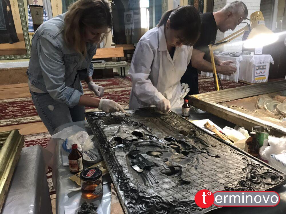 У Миколаївському соборі та колишніх келіях монахів-францисканців цими днями тихо. У приміщеннях древньої сакральної споруди чути старовиною і ледве вловлюється запах хімічних речовин, за допомогою яких майстри зі Львова творять магію. Вони рятують старовинні, подекуди унікальні артефакти, деякі знайшли на горищі чи у коморі, які хтось викинув, як непотріб. Ми на власні очі побачили, як до життя повертають давно забуті раритети та розпитали фахівців про секрети цього відтворення.