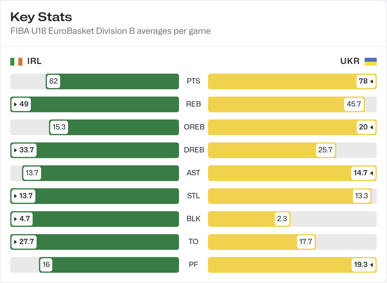 Після трьох зіграних матчів Україна має статистичну перевагу над Ірландією за результативністю, передачами, кидковими показниками, суперник має кращі цифри на підбираннях. Для виходу в плей-оф Україні точно потрібно обов’язково перемагати Ірландію. В чвертьфінал, нагадаємо, вийдуть дві кращі команди з групи.