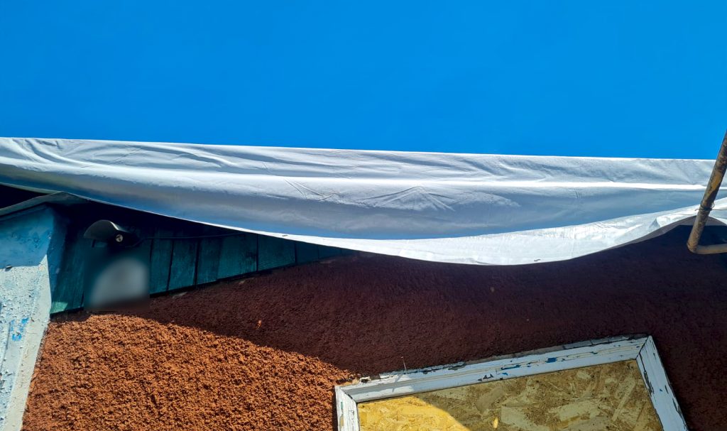 За словами мешканки Херсона, тентову плівку на пошкодженій частині даху її будинку закріпили настільки ненадійно, що сильний вітер може зірвати її. У підтвердження своїх слів жінка надала фото.