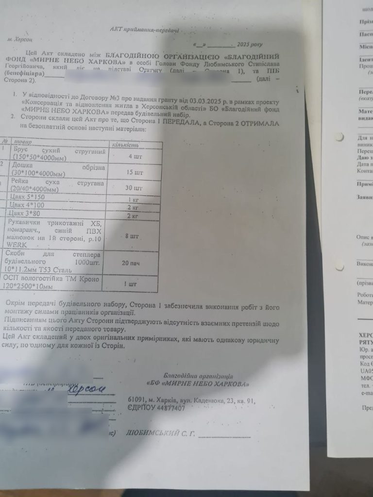 Після закінчення робіт представники благодійної організації дали жінці на підпис акт. Олена придивилася, і була шокована.