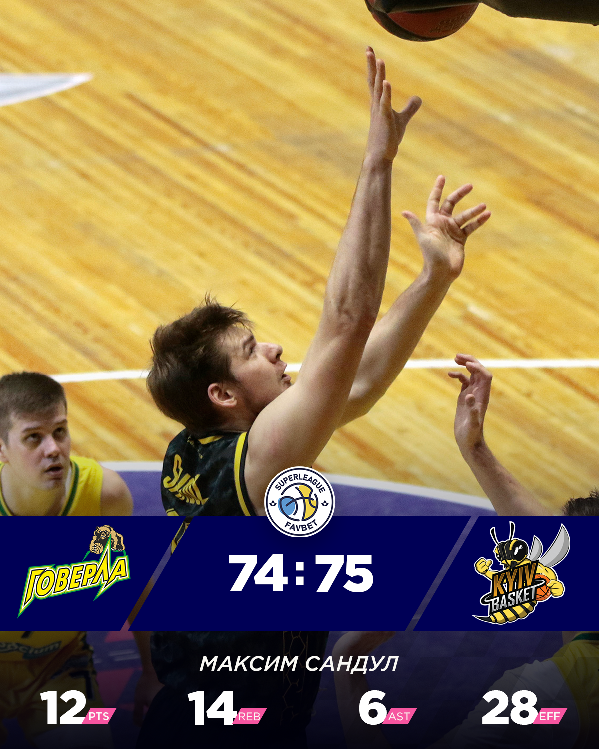 У поєдинку української Суперліги Favbet Київ-Баскет отримав достойний опір і завдяки камбеку зумів вдома виграти на останніх секундах у Прикарпаття-Говерли. Гра завершилася з рахунком 75:74 на користь киян, які цього сезону здобули перемоги в усіх трьох зустрічах проти іванофранківців. Говерла сьогодні виграла три з чотирьох чвертей.