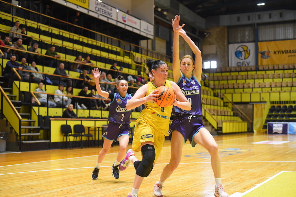 Київ-Баскет здобув перемогу в першому півфіналі сезону жіночої Суперліги, здолавши на майданчику столичного ПС Венето одеський Інтерхім — 72:65.