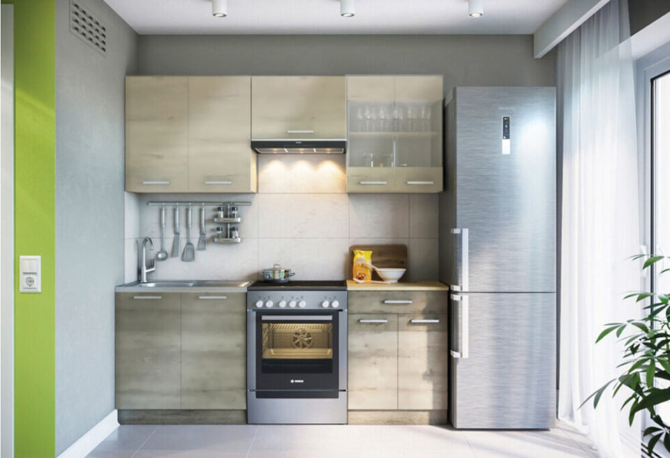 Пряма кухня – більш звичне, можна сказати класичне рішення, яке підходить для відкритих планувань, наприклад квартири-студії. Так і загалом – це доцільний варіант в будь-якому місці. Такі гарнітури бувають дуже компактні, буквально 1,5-2 м довжиною. Тому, якщо у вас екстремально обмежений простір, така модель стане відмінним рішенням.