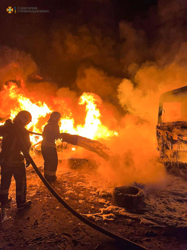 “30 грудня о 00:27 в с. Товстолуг, Великогаївської громади Тернопільського району на території приватного підприємства виникла пожежа сміттєвоза. Внаслідок пожежі знищено сміттєвоз та зношені шини від сільськогосподарської техніки на площі 70 кв. м.