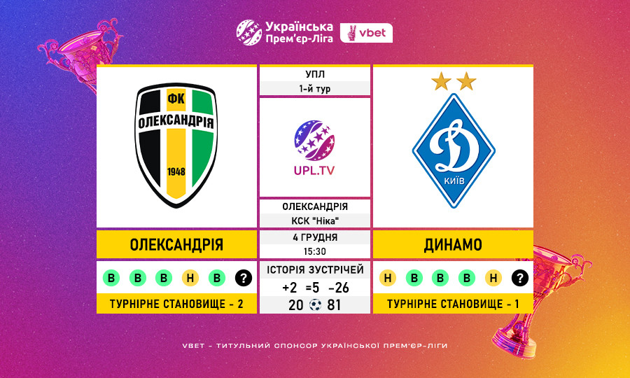 Матч 1-го туру VBET Української Прем’єр-Ліги «Олександрія» — «Динамо»: статистичне прев’ю