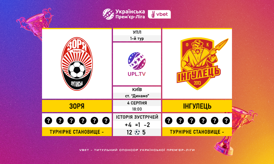Матч 1-го туру Української Прем’єр-Ліги VBET «Зоря» — «Інгулець»: статистичне прев’ю