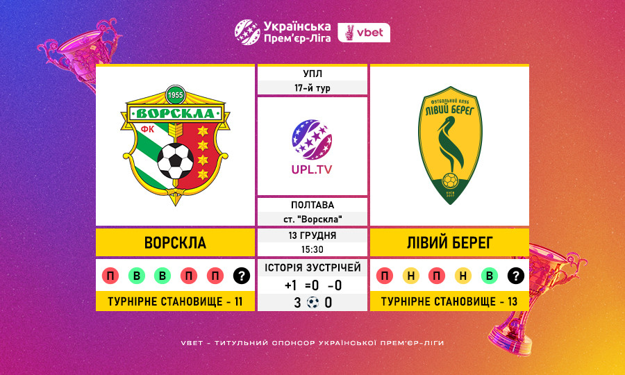 Матч 17-го туру VBET Української Прем’єр-Ліги «Ворскла» — «Лівий Берег»: статистичне прев’ю