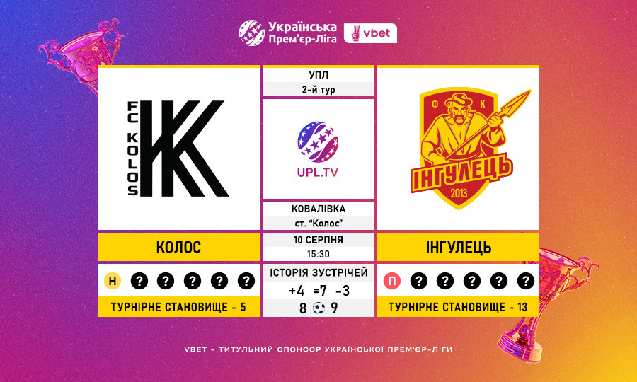 Матч 2-го туру Української Прем’єр-Ліги VBET «Колос» — «Інгулець»: статистичне прев’ю