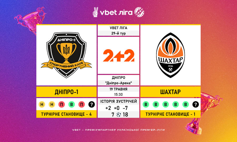 Матч 29-го туру VBET Ліги «Дніпро-1» — «Шахтар»: статистичне прев’ю