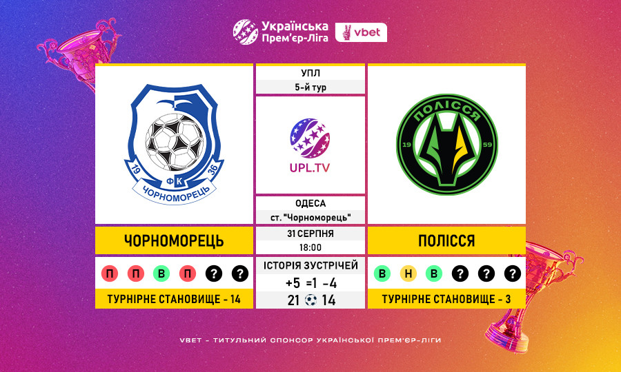 Чорноморець може на своєму полі 100-й раз зіграти внічию в УПЛ.