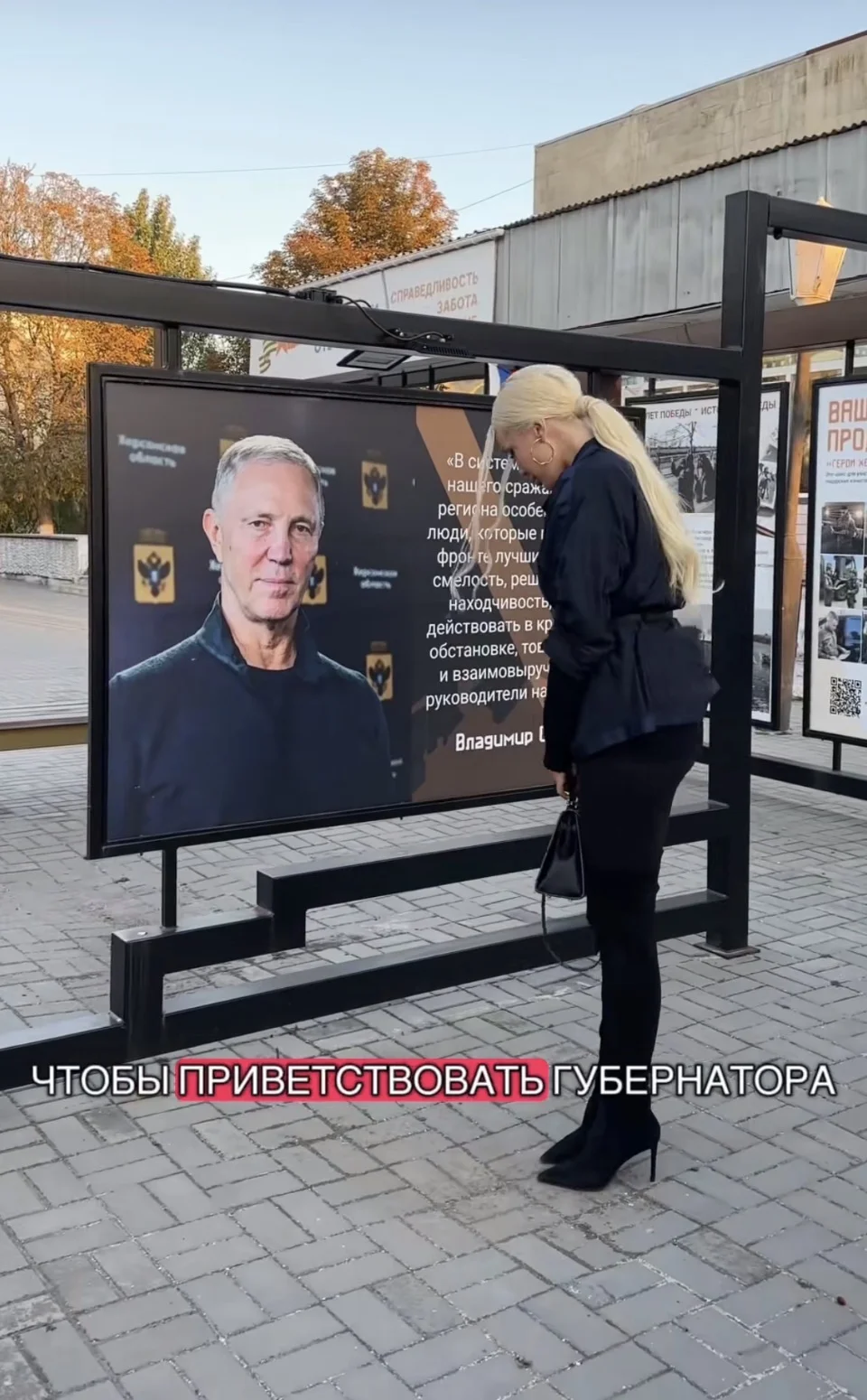 Найсмішнішим моментом у відео, який і привернув увагу до акаунта Катерини, став уклін портрету Сальдо. Блогерка показала, що перед тим, як поснідати кланяється так званому губернатору, чий плакат окупаційна влада повісила на одній з вулиць тимчасово окупованого Генічеська.