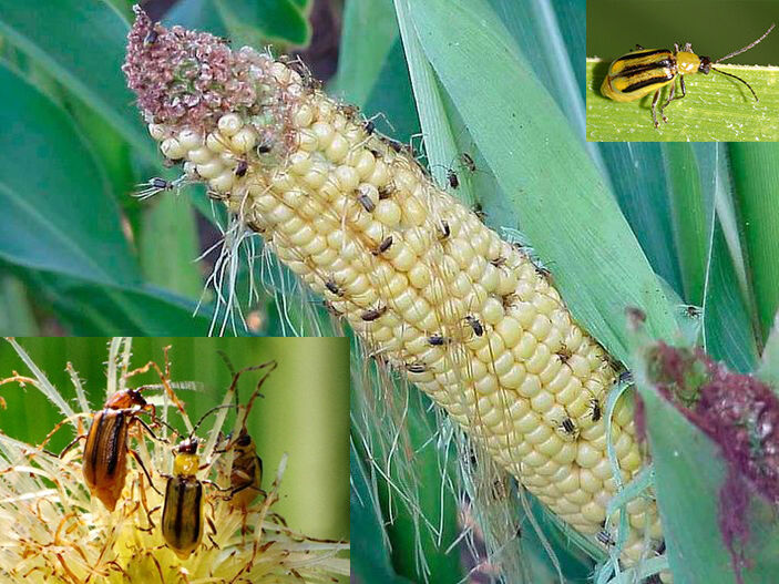 Західний кукурудзяний жук ( Diabrotica) – небезпечний шкідник кукурудзи. Личинки західного кукурудзяного жука живляться корінням кукурудзи. Але при їх відсутності певний час можуть живитися корінням деяких злакових трав, на яких не здатні повноцінно розвиватись. Личинки живляться корінням кукурудзи, що призводить до зменшення кореневої маси, поганого розвитку коріння і ураження його гнилями, які надають йому бурого забарвлення. Ослаблені рослини стають сприйнятливішими до різних захворювань, шляхом того, що жуки та личинки є переносниками різноманітних збудників захворювань кукурудзи: грибкових, бактеріальних, вірусних. Пошкоджені дорослі рослини під час сильних вітрів та дощів легко полягають, і стебло набуває форми «гусячої шиї». При цьому стає повністю або частково неможливий механізований збір врожаю. Найбільша шкодочинність західного кукурудзяного жука проявляється на тих полях, де відсутня сівозміна. При беззмінному вирощуванні кукурудзи значно зростає щільність популяції цього шкідника.