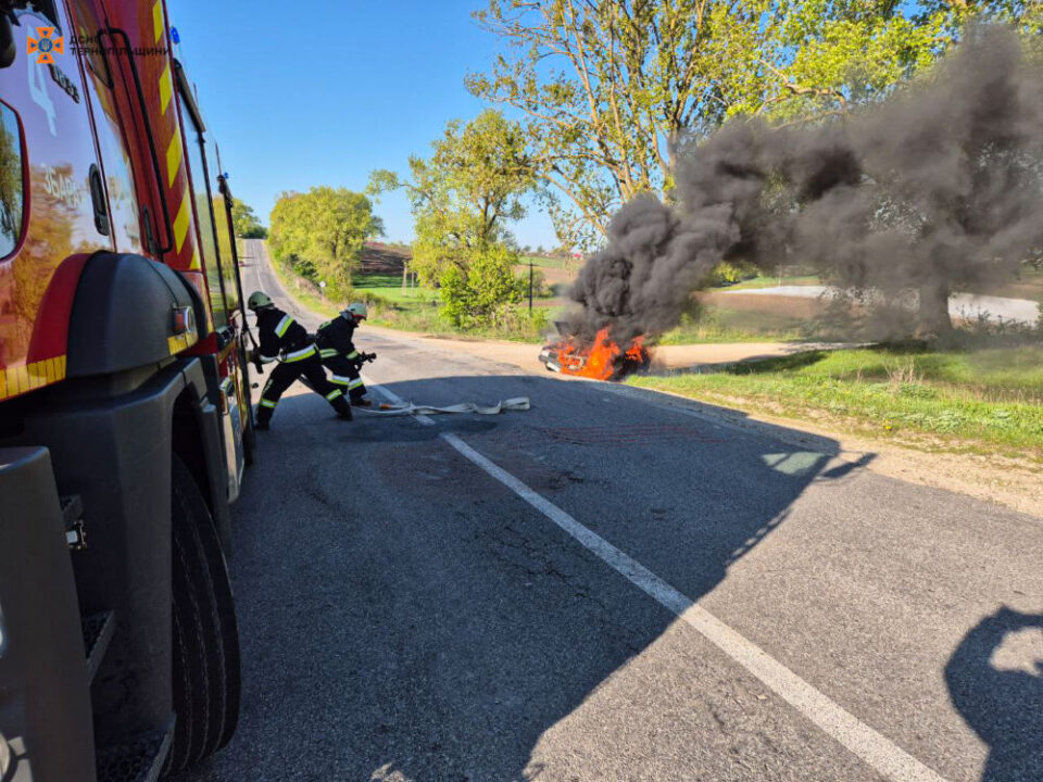 “28 квітня о 08:14 в с. Синява, Збаразької ТГ, Тернопільського району виникла пожежа легкового автомобіля АЗЛК. Внаслідок пожежі знищено – легковий автомобіль. Причина виникнення пожежі та матеріальні збитки встановлюються.