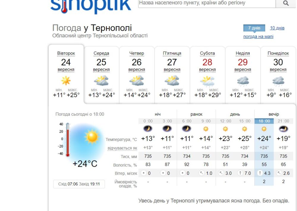 Температура повітря коливатиметься від 21 до 24 градусів. Похолодання очікується з 29 вересня.