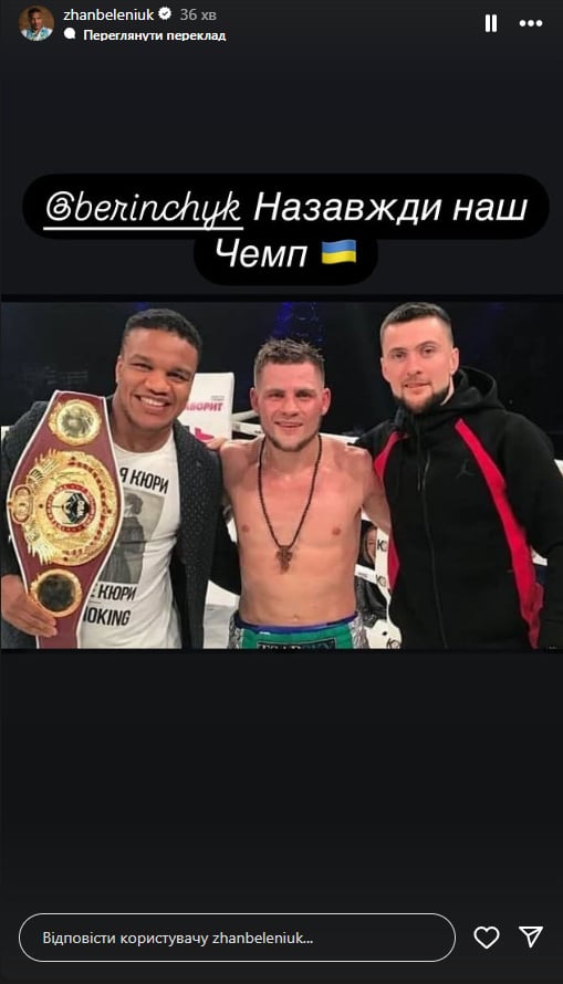 «Назавжди наш чемп». Беленюк підтримав Берінчика після фіаско в бою з Девісом Берінчик / Фото – Yahoo Олімпійський чемпіон Токіо-2020 з греко-римської боротьби Жан Беленюк відреагував на дострокову поразку колишнього володаря титулу WBO у легкій вазі Дениса Берінчика (19-1, 9 КО) від американця Кішона Девіса (13-0, 9 КО).