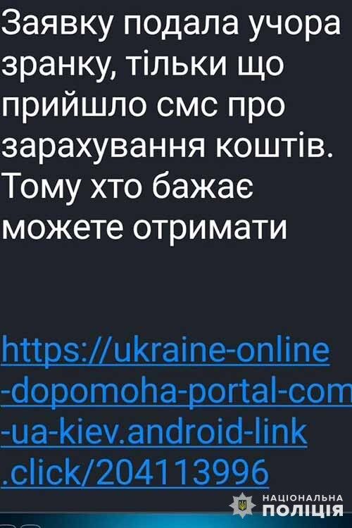 Майже усі заявники знайшли інформацію про виплату в одній з груп у застосунку Viber. У тексті йшлося, що допомогу можна отримати до кінця року, а також були вказані посилання для клієнтів різних банків. Переконливими для людей були свідчення начебто однієї з учасниць групи про те, що вона отримала виплати. Однак, як з’ясувалося, обліковий запис жінки був зламаний і від її імені писали невідомі особи.