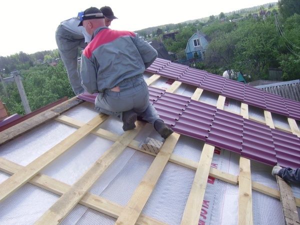 Металлочерепица среди своих преимуществ имеет возможность выполнять укладку изделия без привлечения профессиональных строителей. Таким шансом сэкономить пользуются многие домовладельцы, ведь можно: