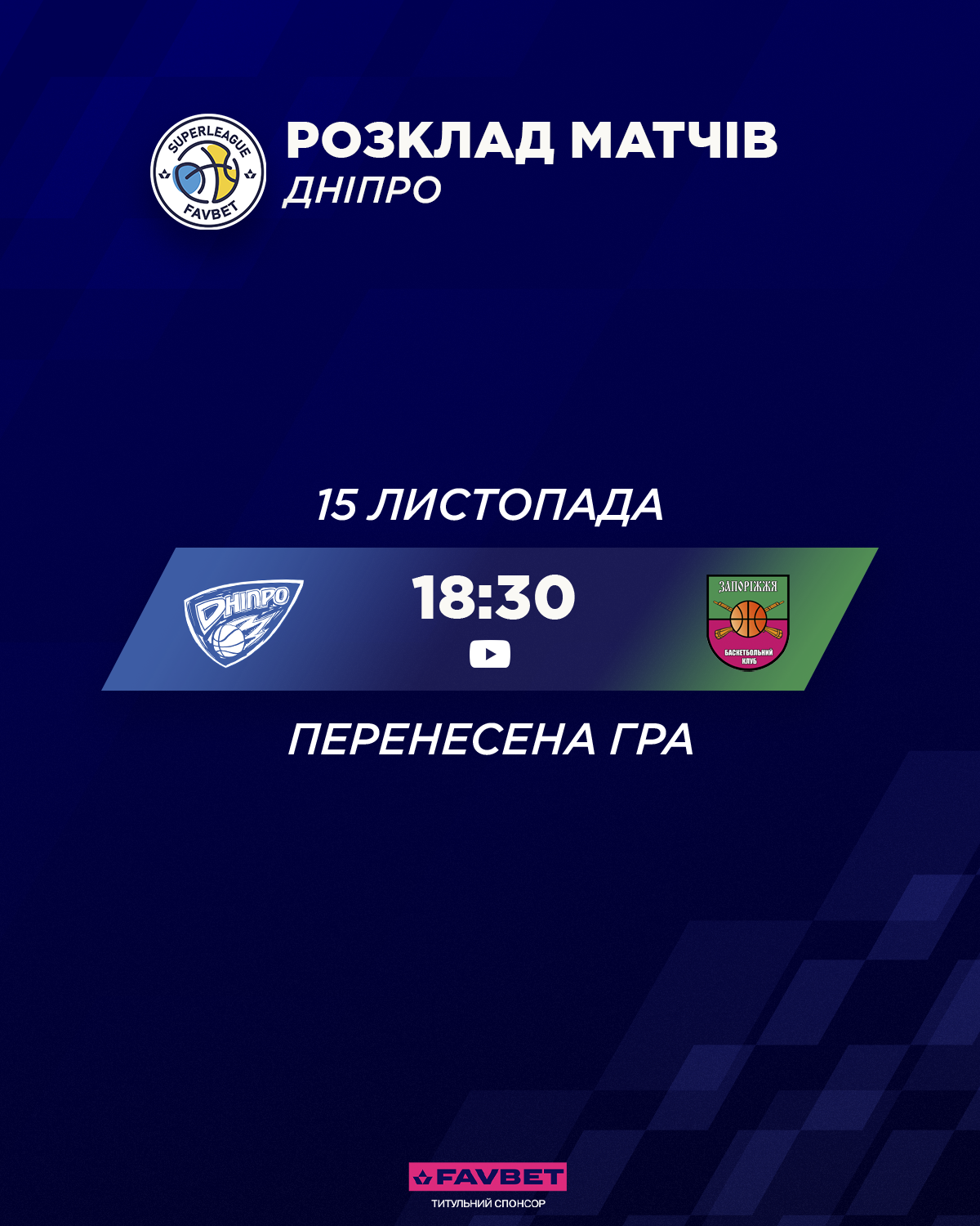 До вашої уваги розклад матчів та трансляцій Суперліги Favbet 11 – 16 листопада: