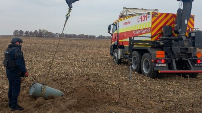 У Броварському районі посеред поля знайшли бойову частину ракети Х-101. На місці працювали сапери Мобільного рятувального центру швидкого реагування ДСНС України.