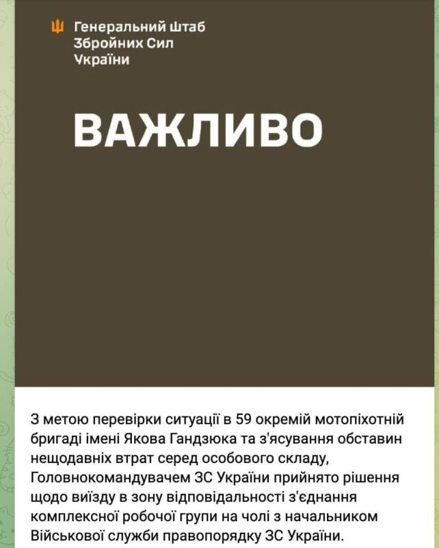 В зону відповідальності бригади відправлять робочу групу на чолі з начальником Військової служби правопорядку, бо парамедикиня Катерина Поліщук заявила, що нинішній командир Богдан Шевчук розвалює бригаду.