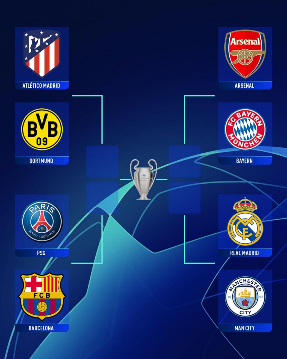 По итогам церемонии жеребьевки в четвертьфинале ЛЧ сложились следующие футбольные пары: