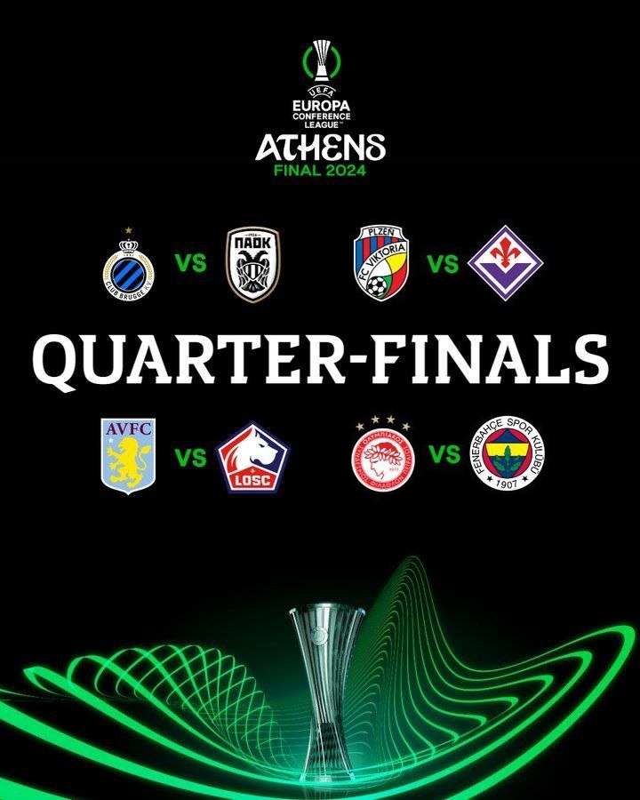 В четвертьфинале самого слабого по силе еврокубка Лиги конференции Греция сохранила самое большое количество своих представителей – 2. Еще по одной команде выступят от Турции, Франции, Англии, Бельгии, Чехии и Италии. На данной стадии турнира посева и других ограничений нет.