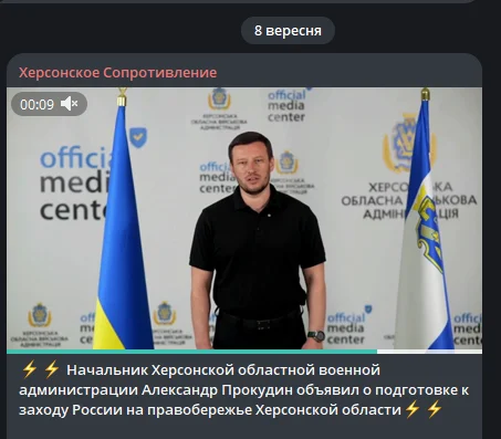 “Шановні жителі Херсонщини. Як голова ОВА звертають до Вас з важливою інформацією. Президент погодився на звільнення правобережжя області, відкриваючи шлях до миру. Розпочато вивід ЗСУ до прилеглих областей для мінімізації ризиків від введення російських військ!” – зазначив псевдоПрокудін.