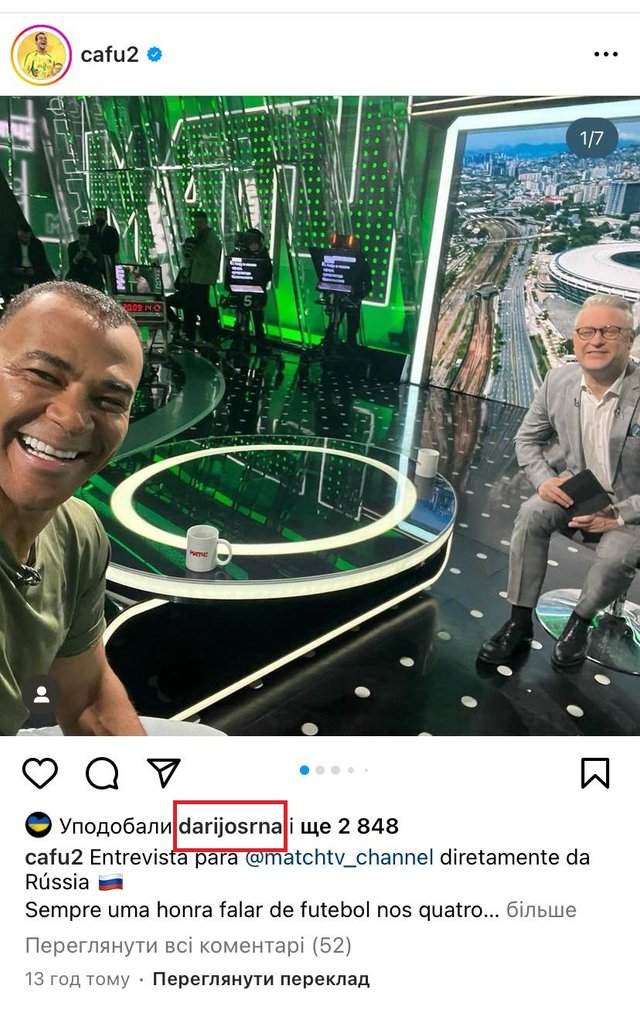 Бразильский футболист, у которого 3 миллиона подписчиков в Instagram, делится на весь мир тем, что его приветливо встретили и приняли в рф. Он опубликовал на своей странице соответствующий пост, который не ушел от внимания бывшего хорватского футболиста, а ныне спортивного директора «Шахтера» Дарио Срны. Хорват поставил лайк под этим постом и попал в скандал.