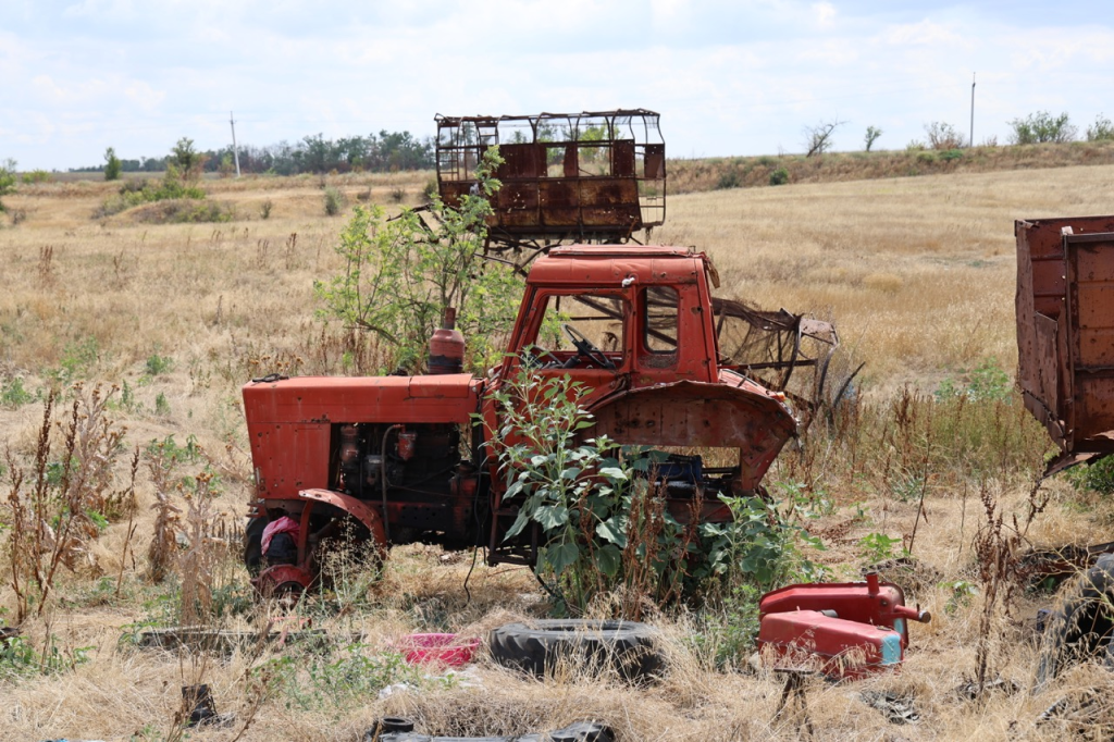 The old tractors are riddled with huge fragments of shells, mines, missiles, and maybe even bombs. All of this fell on the heads of the villagers and soldiers for six months. First, the Russians, who held it until early September 2022, and then the Ukrainians, who held back counterattacks and launched an offensive from here, towards Beryslav. As a result of the fighting, the village of Bilohirka was destroyed by 99%, but dozens of people have returned here over the past two years.