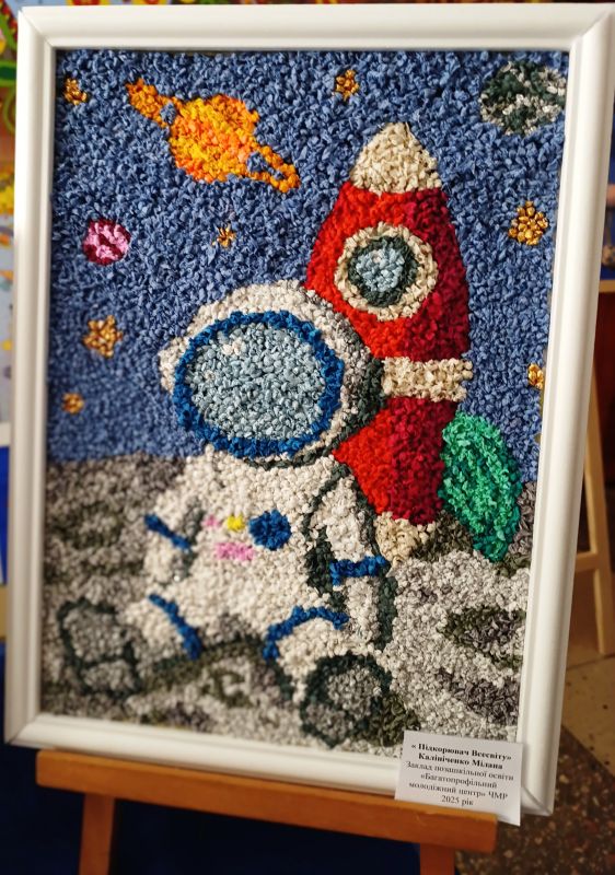 Дітвора Центру представила на конкурс близько півсотні виробів у розділах: «декоративно-ужиткове мистецтво» (м’яка іграшка, паперопластика, вироби з різних матеріалів, композиція на тлі з різних матеріалів, інші техніки виконання) та «образотворче мистецтво» (живопис, дизайн космічної валюти). Космічні експонати юних черкасців були різноманітні та різножанрові, у які вкладена позитивна дитяча енергетика.